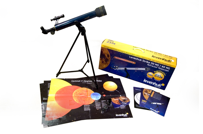 Младшая модель серии Levenhuk Strike 50 NG – компактный ахроматический рефрактор на альт-азимутальной монтировке с очень простым управлением идеально подойдет для первых знакомств с устройством телескопа.