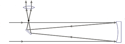 Разочаровавшись в современных ему рефракторах, И. Ньютон в 1667 г. начал разработку телескопа-рефлектора. Ньютон использовал металлическое главное зеркало (стеклянные зеркала с серебряным или алюминиевым покрытием появились позже) для собирания света, и небольшое плоское зеркальце для отклонения собранного светового пучка под прямым углом и вывода его сбоку трубы в окуляр. Таким образом, удалось справиться с хроматической аберрацией – вместо линз в этом телескопе используются зеркала, которые одинаково отражают свет с разными длинами волн. Главное зеркало рефлектора Ньютона может быть параболическим или даже сферическим, если его относительное отверстие сравнительно невелико. Сферическое зеркало гораздо проще изготовить, поэтому рефлектор Ньютона со сферическим зеркалом – это один из самых доступных типов телескопов, в том числе и для самостоятельного изготовления.