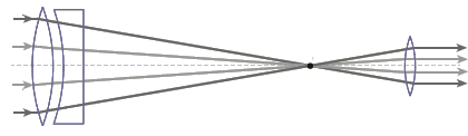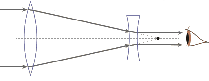 В рефракторе Галилея (созданном в 1609 г.) для того, чтобы собрать максимум звездного света и позволить человеческому глазу его увидеть, использовались две линзы. Первая линза (объектив) – выпуклая, она собирает свет и фокусирует его на определенном расстоянии, а вторая линза (играющая роль окуляра) – вогнутая, превращает сходящийся пучок световых лучей обратно в параллельный. Система Галилея дает прямое, неперевернутое изображение, однако сильно страдает от хроматической аберрации, портящей изображение. Хроматическая аберрация проявляется в виде ложной окраски границ и деталей объекта.