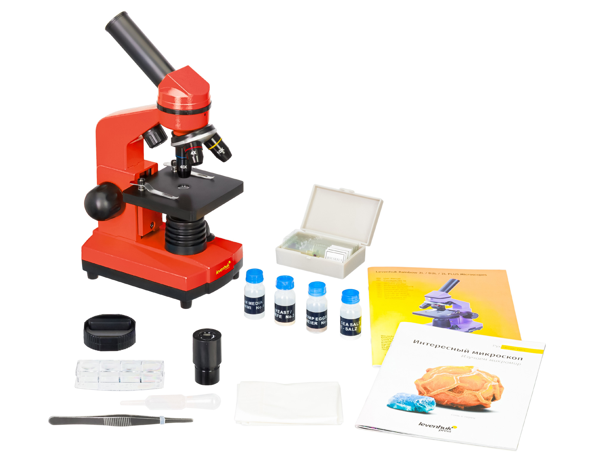 Микроскоп Levenhuk Rainbow 2L тоже можно считать детским, и он также комплектуется набором для экспериментов, но он выше классом. В нем установлена комбинированная подсветка, т. е. образцы можно освещать как снизу, как в LabZZ M101, так и сверху. Благодаря этому можно рассматривать не только прозрачные препараты, но и камешки, листья, насекомых без препарирования – объектов для изучения в 2 раза больше! И так как в микроскопе используется стеклянная оптика, то все они видны четче и с лучшей детализацией, чем в LabZZ M101.