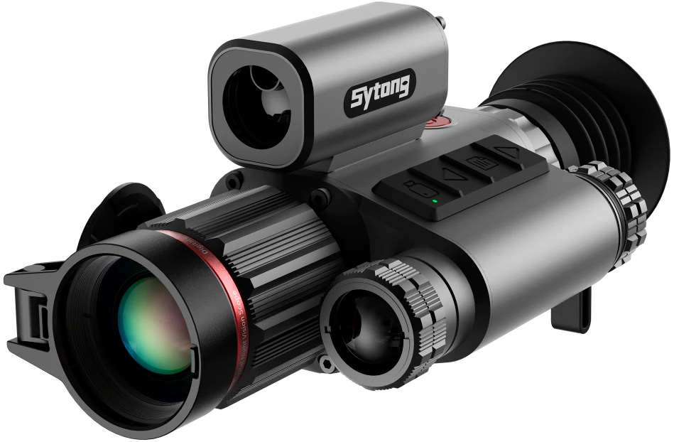 Тепловизионный прицел Sytong AM03-50LRF представляет собой высокоточный прибор со значительной дальностью обнаружения и распознавания тепловых сигнатур (автомобиль – 3850/1930 м, ростовая фигура – 2500/1255 м, олень – 2215/1100 м). Среди функций устройства – рекордер, лазерный дальномер и баллистический калькулятор. Прицел совместим с крупнокалиберным оружием (например, .338 LP), он справляется с