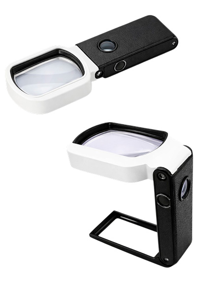 Две линзы. Увеличение: 10/25 крат. Размер линзы: 55x85 мм/18 мм. Светодиодная подсветка. Складная конструкция
