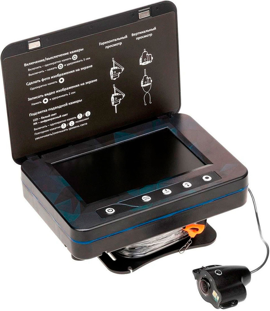 | Дополнительно | фиксатор на руку, фиксатор на удочку, длина кабеля: 15 м, разрывная нагрузка кабеля: 15 кг, датчик температуры, LED-подсветка (2 светодиода), ИК-подсветка (4 светодиода) |